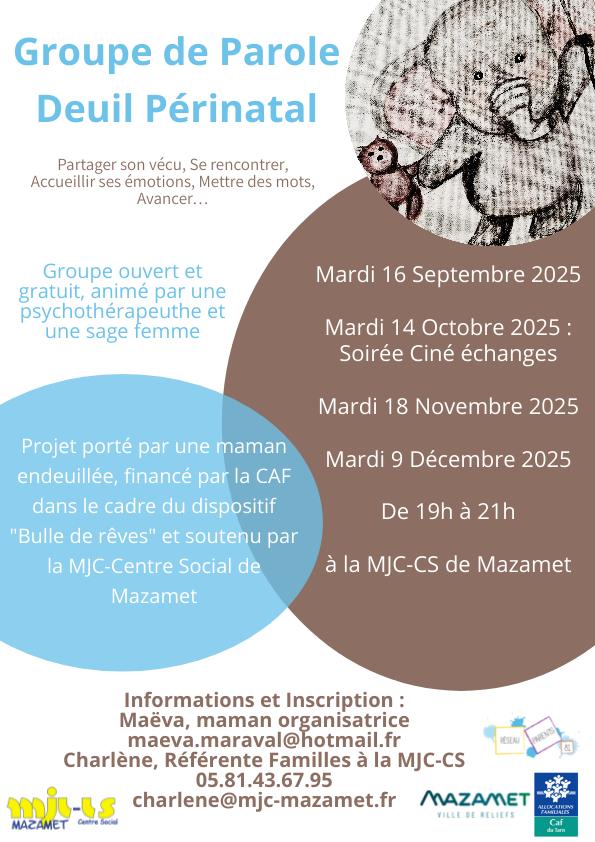 Projet porté par une maman endeuillée, financé par la CAF du Tarn dans le cadre du dispositif « Bulle de rêves » et soutenu par la MJC-Centre Social de Mazamet