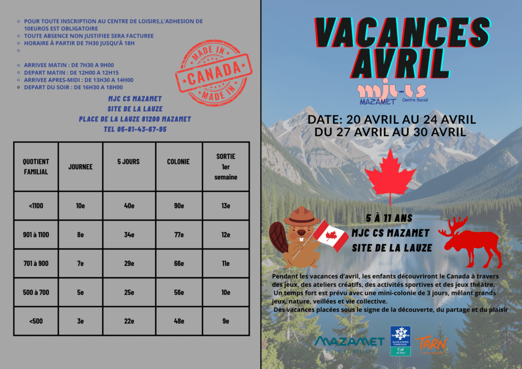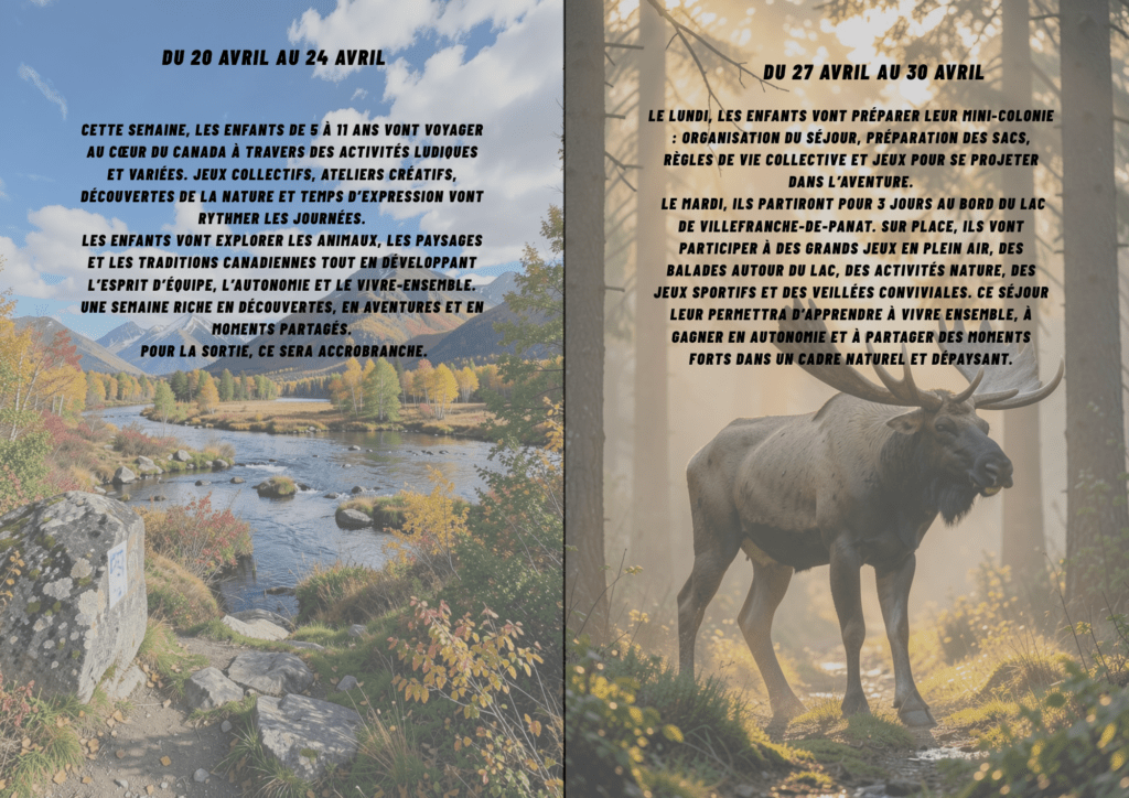 Les programmes des vacances sont disponibles 2 semaines avant chaque périodes de vacances.